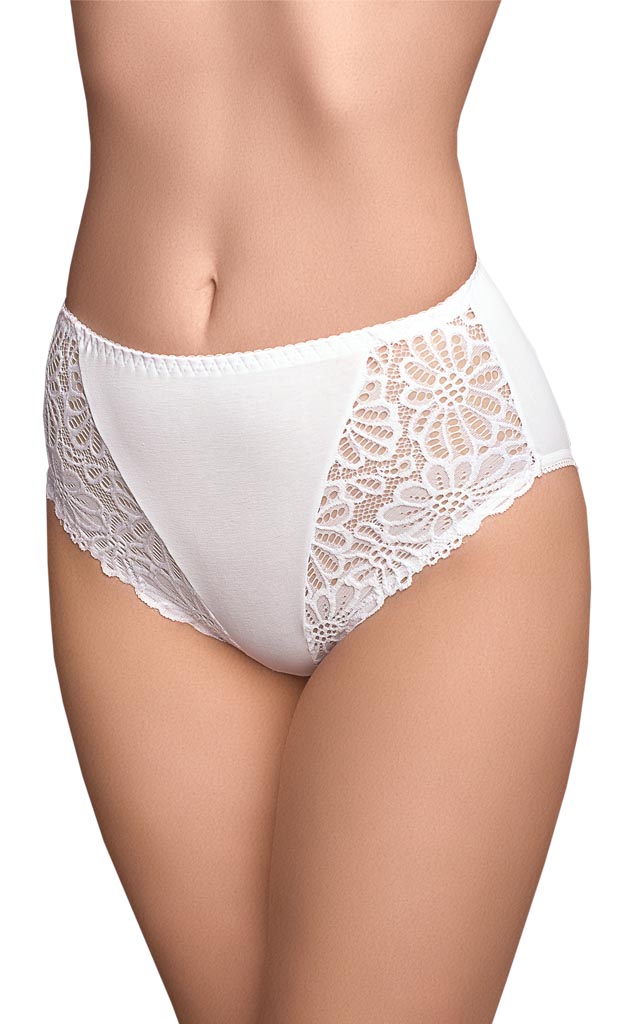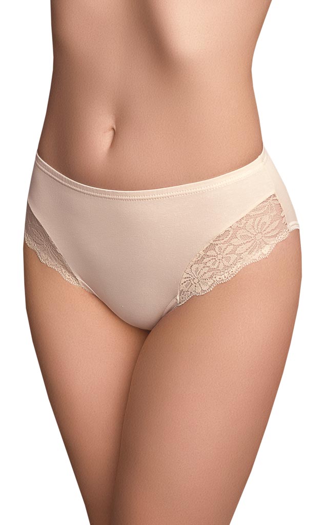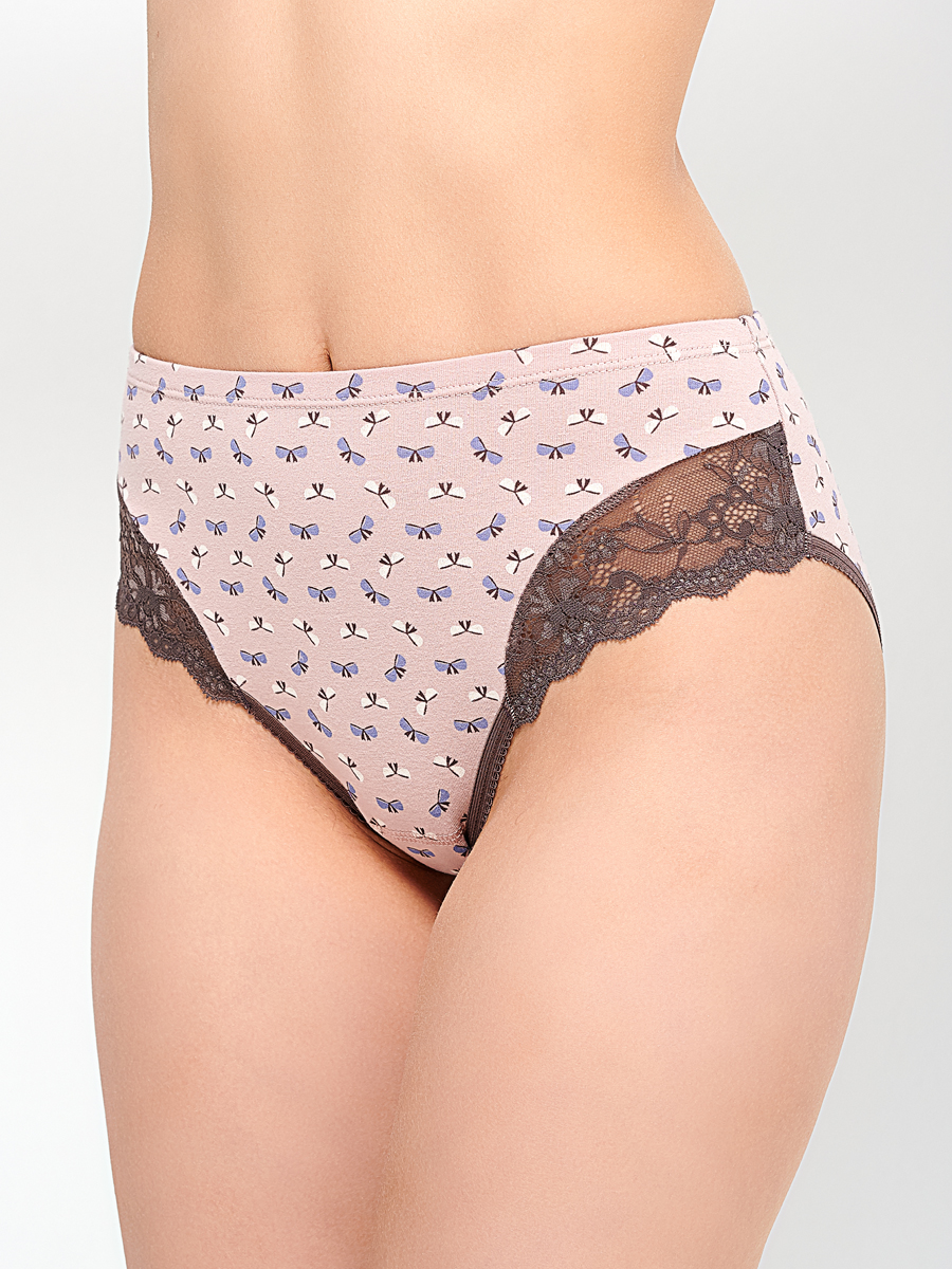 Трусы – классика. Посадка чуть выше средней. Передняя деталь с кружевными вставками по нижнему срезу. Задняя деталь из хлопка. Пояс трусиков обработан швом вподгибку.