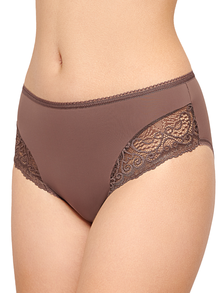 Трусы классические из облегченного микроволокна. Средняя линия талии. Передняя деталь с кружевными вставками по бокам. Ластовица дублирована хлопком.