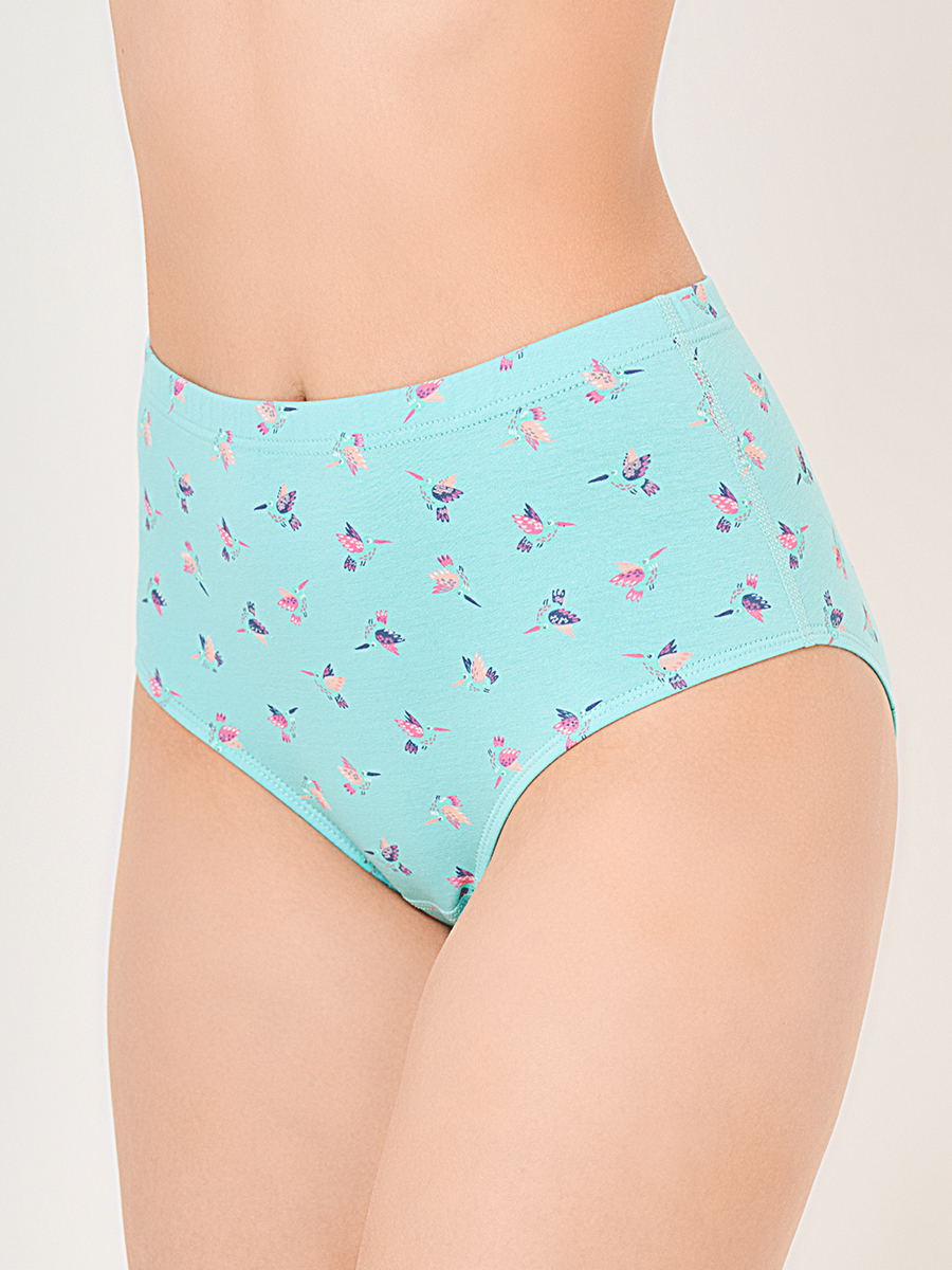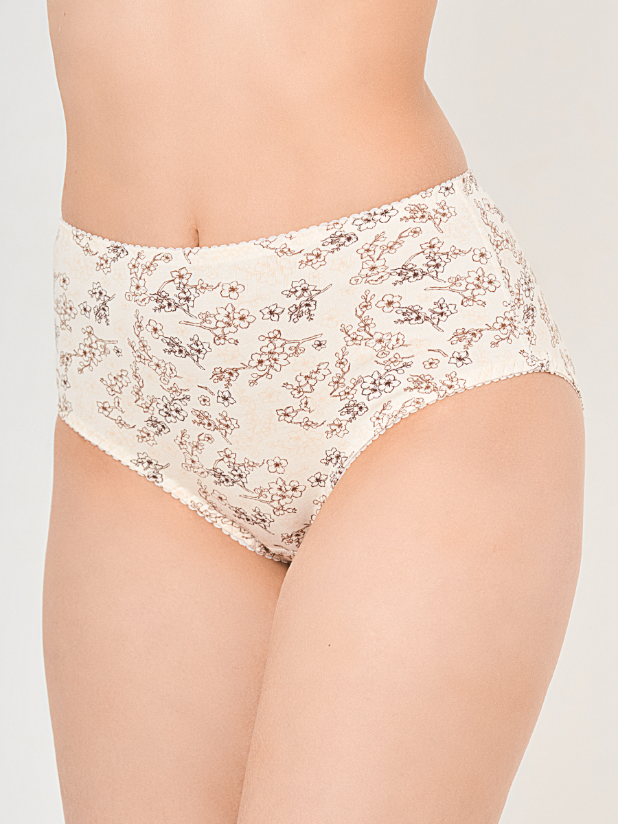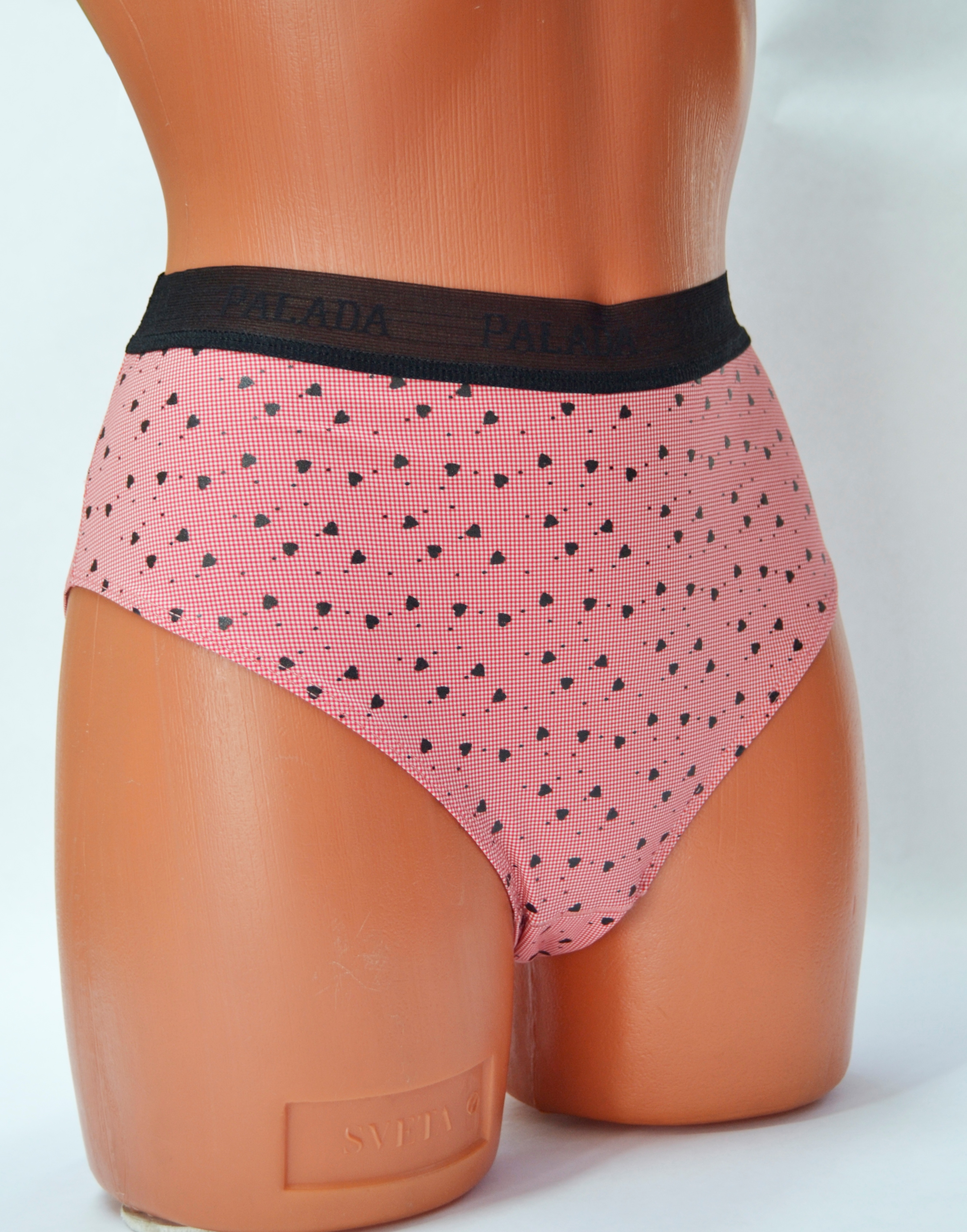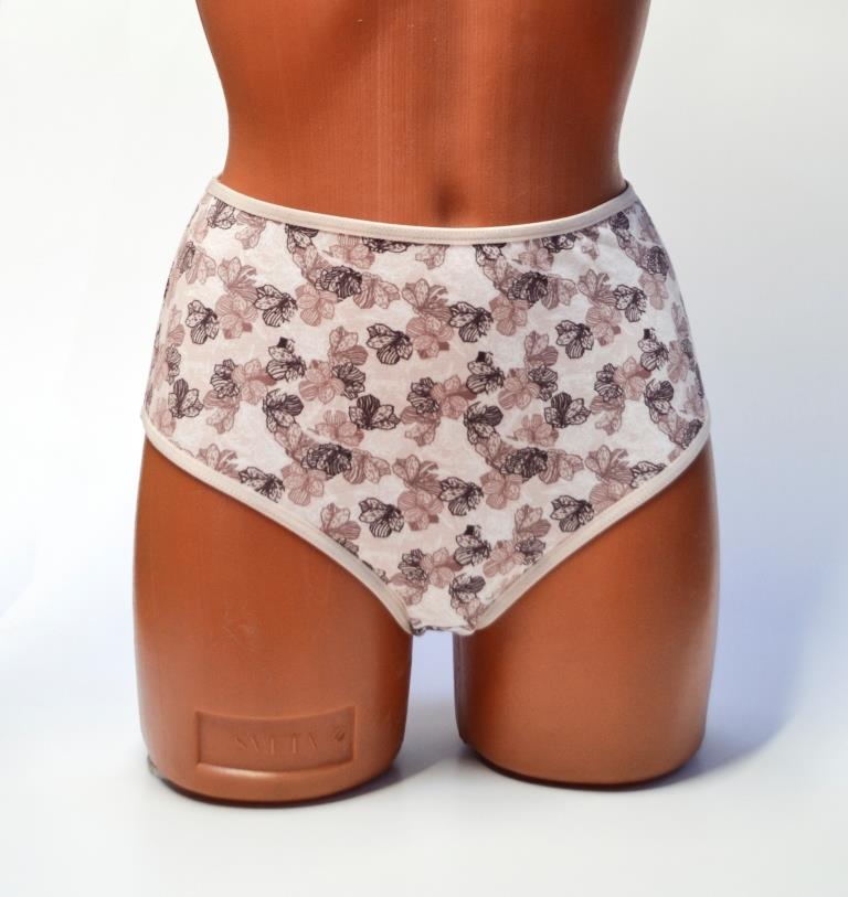 Трусы с высокой посадкой. По поясу широкая резинка (2 см). Боковая часть высокая. Срезы обработаны швом вподгиб. Удобная модель на каждый день.