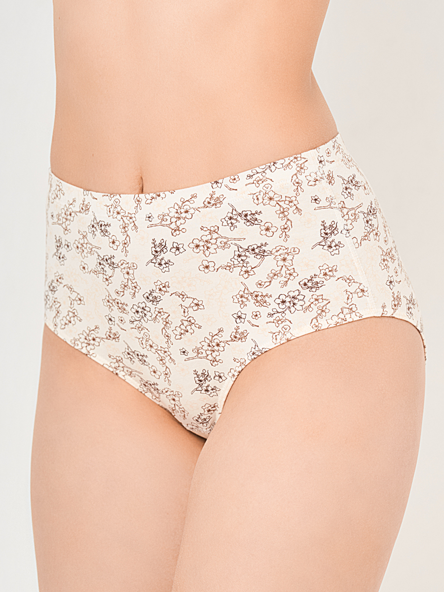 Трусы с высокой линией талии и моделирующим эффектом. Плоские отделочные швы, «ножки» обработаны мягкой эластичной лентой.