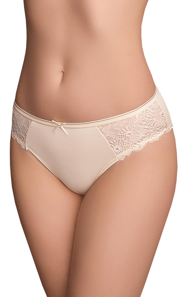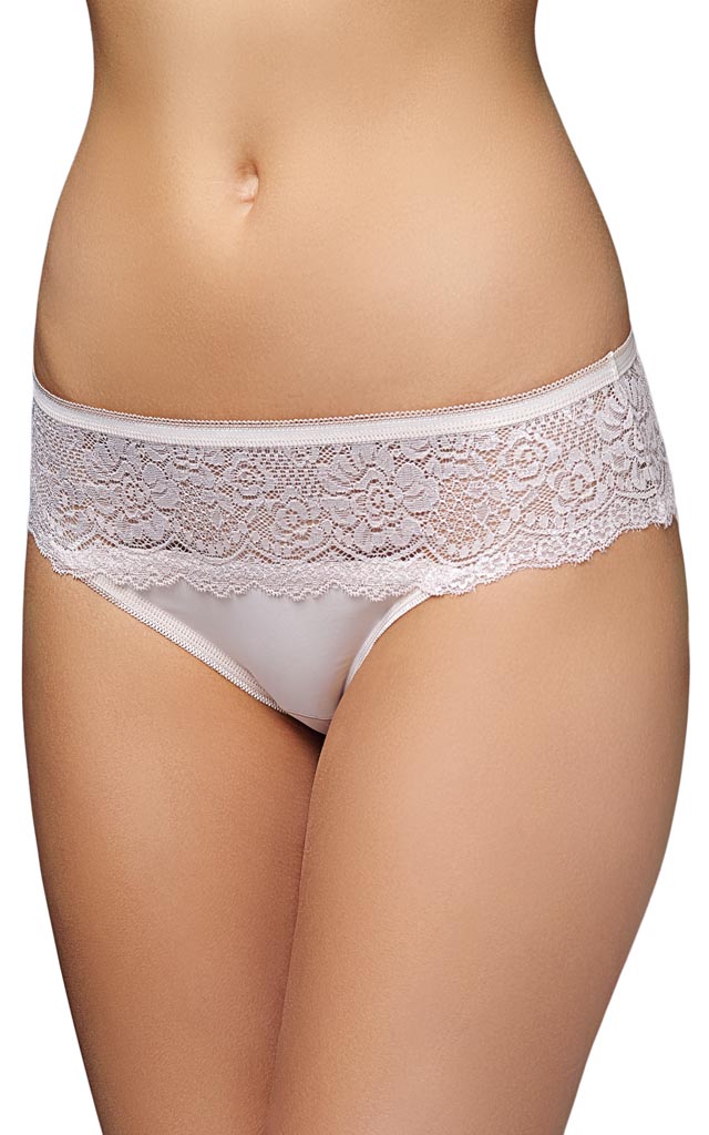 Трусики - слип из облегченного микроволокна. Передняя деталь декорирована кружевной вставкой, настроченной на полотно. Ластовица дублирована хлопком.