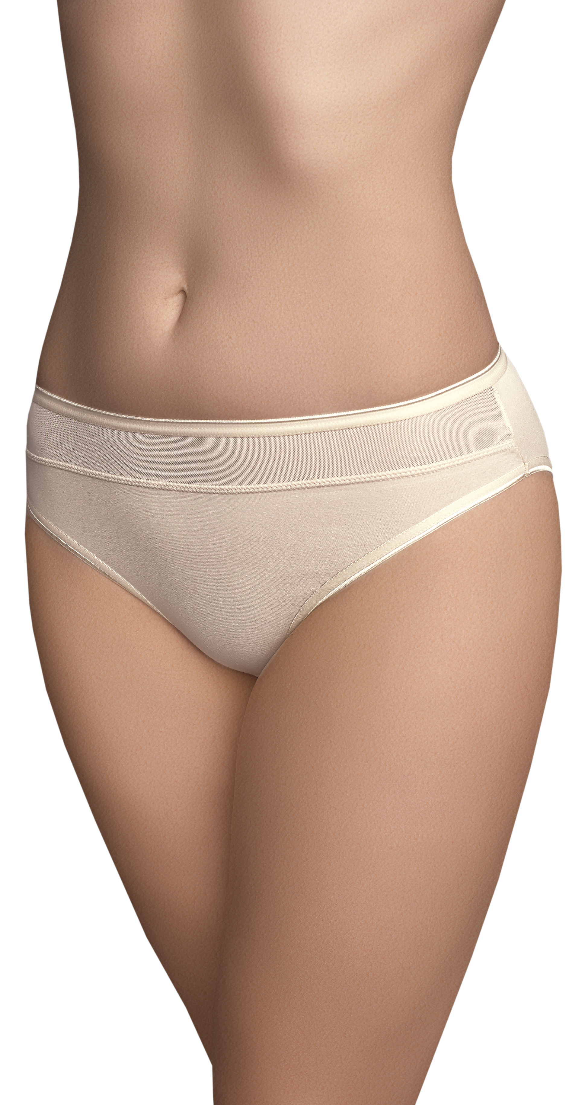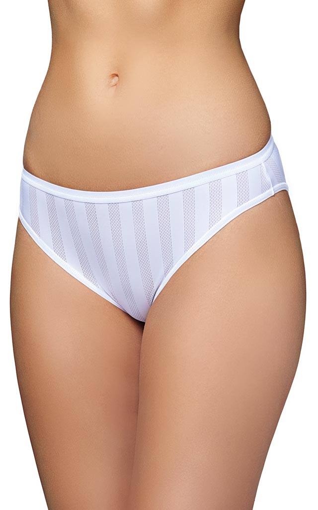 Трусики-слип из облегченного микроволокна. Передняя деталь украшена вставкой из сетки. Ластовица дублирована хлопком.