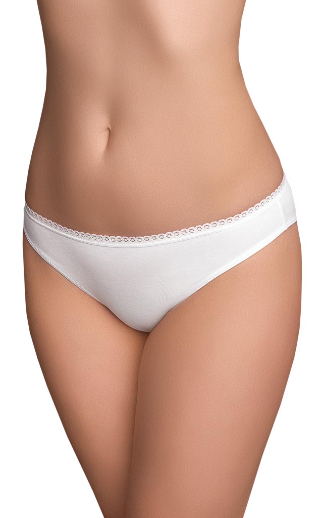 Трусы – слип с низкой посадкой. Верхний срез обработан эластичной тесьмой с кружевным краем, что придаёт простым и лаконичным трусикам особую привлекательность.