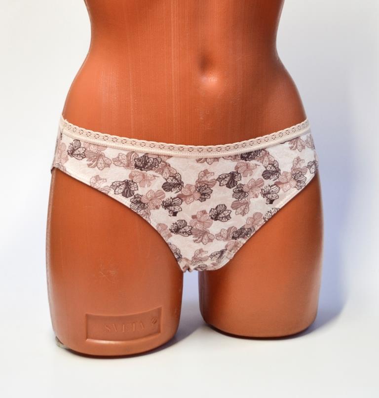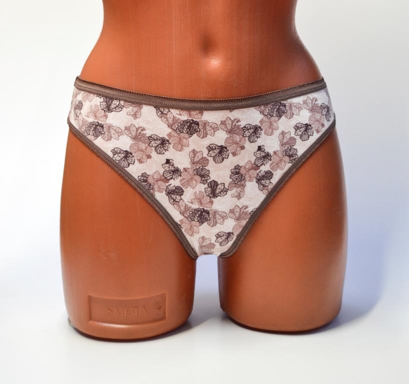 Трусы – слип с низкой посадкой. Верхний срез обработан эластичной тесьмой с кружевным краем, что придаёт простым и лаконичным трусикам особую привлекательность. Нижние срезы обработаны швом вподгибку, придавая особый комфорт в носке.