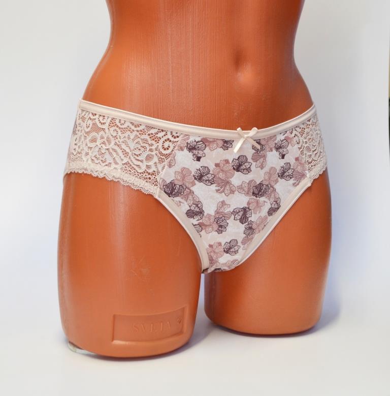 Трусы – слип. Низкая линия талии. Модель из хлопка с кружевом. Обработка края выполнена плоским швом. Нарядные трусики для романтичной натуры.