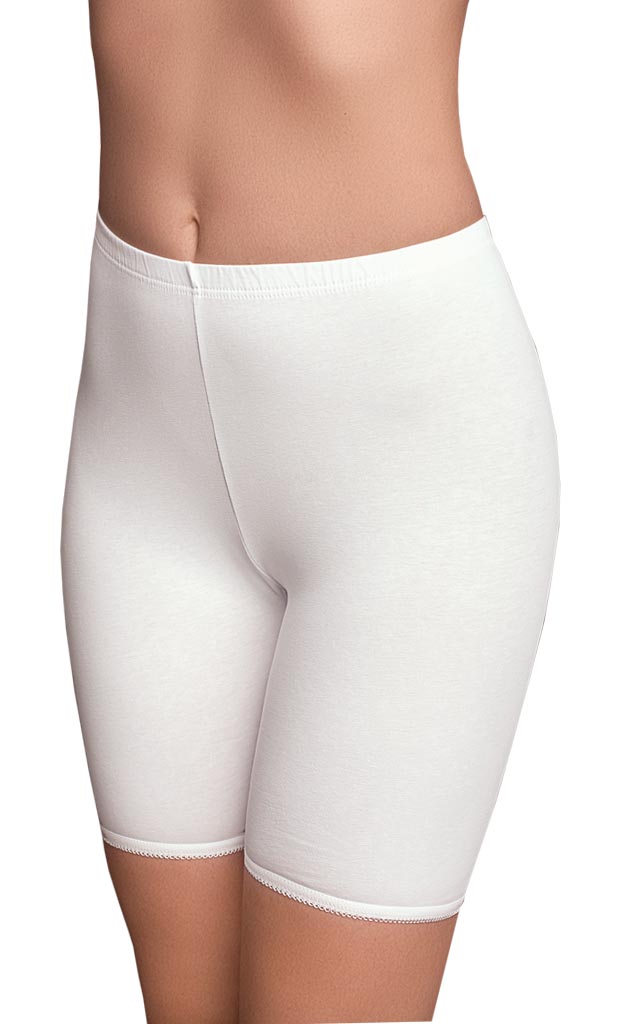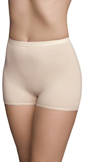 Удлинённые панталоны с высокой линией талии. Модель без кружева. Пояс обработан в подгиб. Низ изделия обработан на плоскошовной машине.