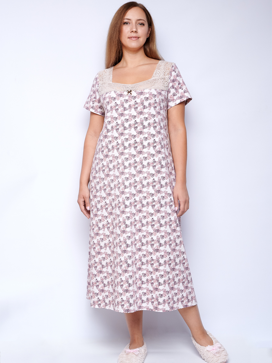Модель из хлопка с добавлением эластана приятна к телу, не теряет форму и долго носится при правильном уходе. Нежная ночная сорочка с мягким кружевом, на тонких бретелях.
