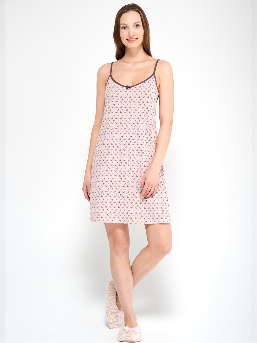 Модель из хлопка с добавлением эластана приятна к телу, не теряет форму и долго носится при правильном уходе. Нежная ночная сорочка на тонких бретелях.