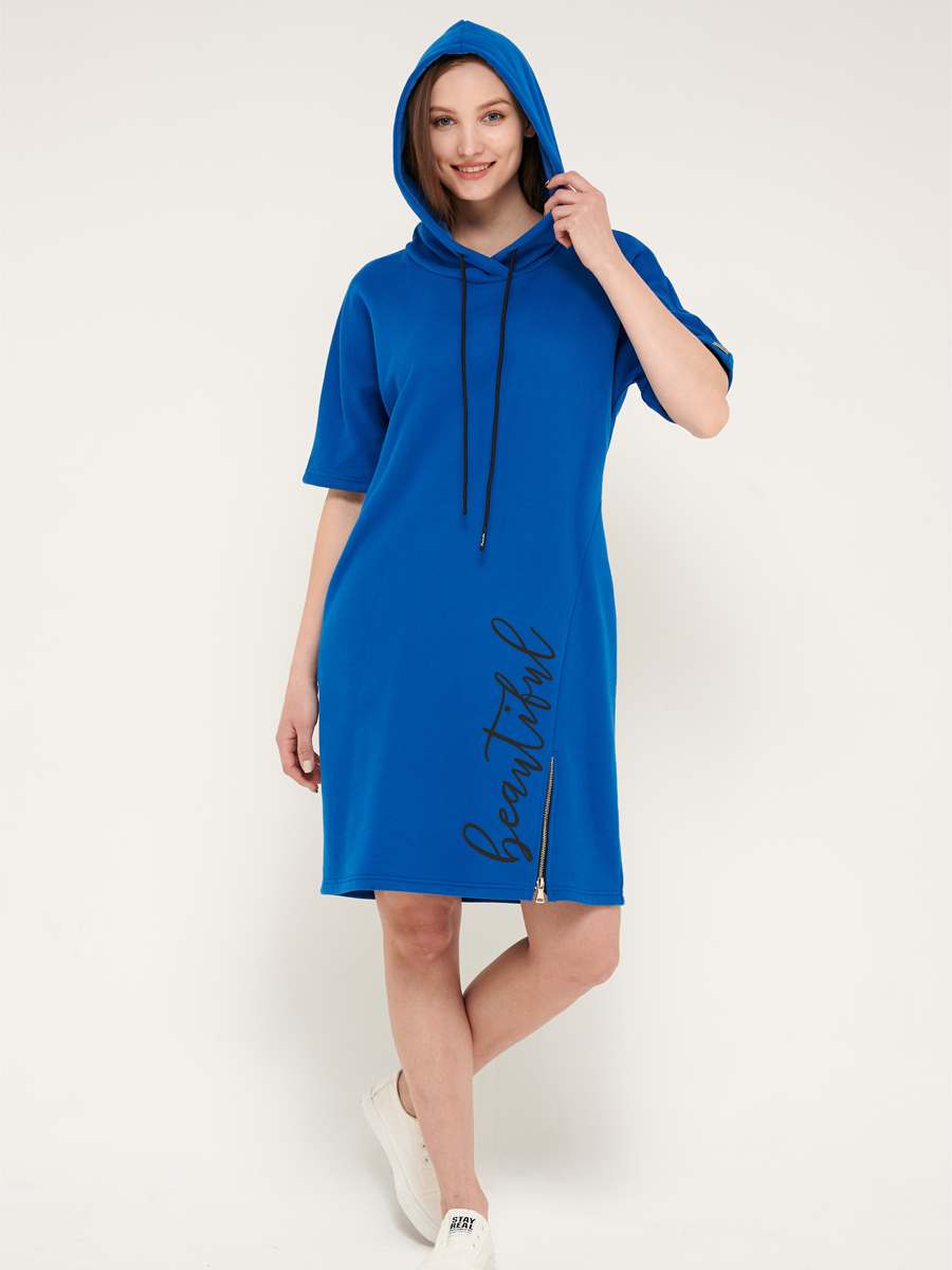 Максимально комфортное платье-худи свободного кроя, с функциональными карманами и удобным капюшоном. Эта модель подойдет любой девушке, независимо от роста и комплекции. Молния, фирменные детали и стойкий принт делает это платье уникальным. Идеальная вещь, которая будет с вами круглый год.