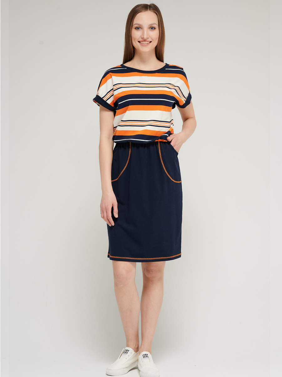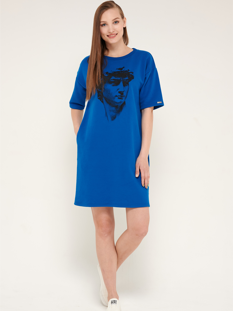 Молодежное платье свободного кроя, с функциональными карманами в боковых швах. Мягкий стойкий принт привлекает внимание и завершает образ.
