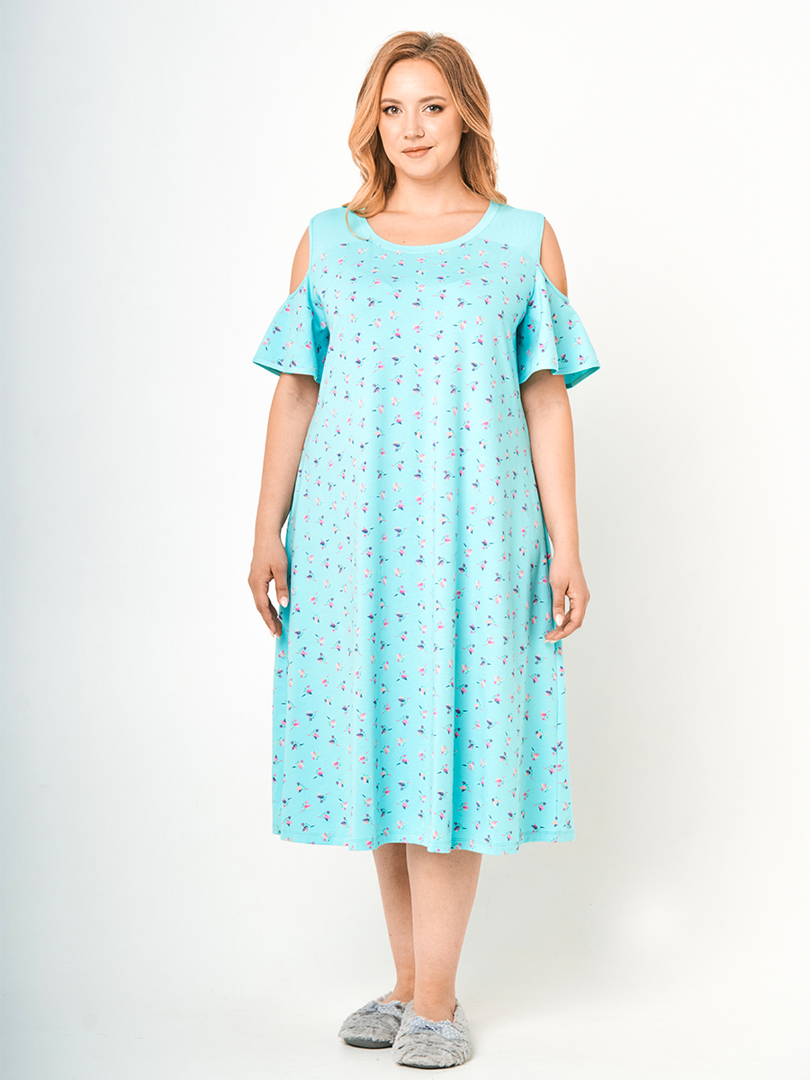 Домашнее платье свободного силуэта комфортно в носке. Оригинальный дизайн привлекает внимание и позволяет в домашней обстановке выглядеть стильно и женственно.