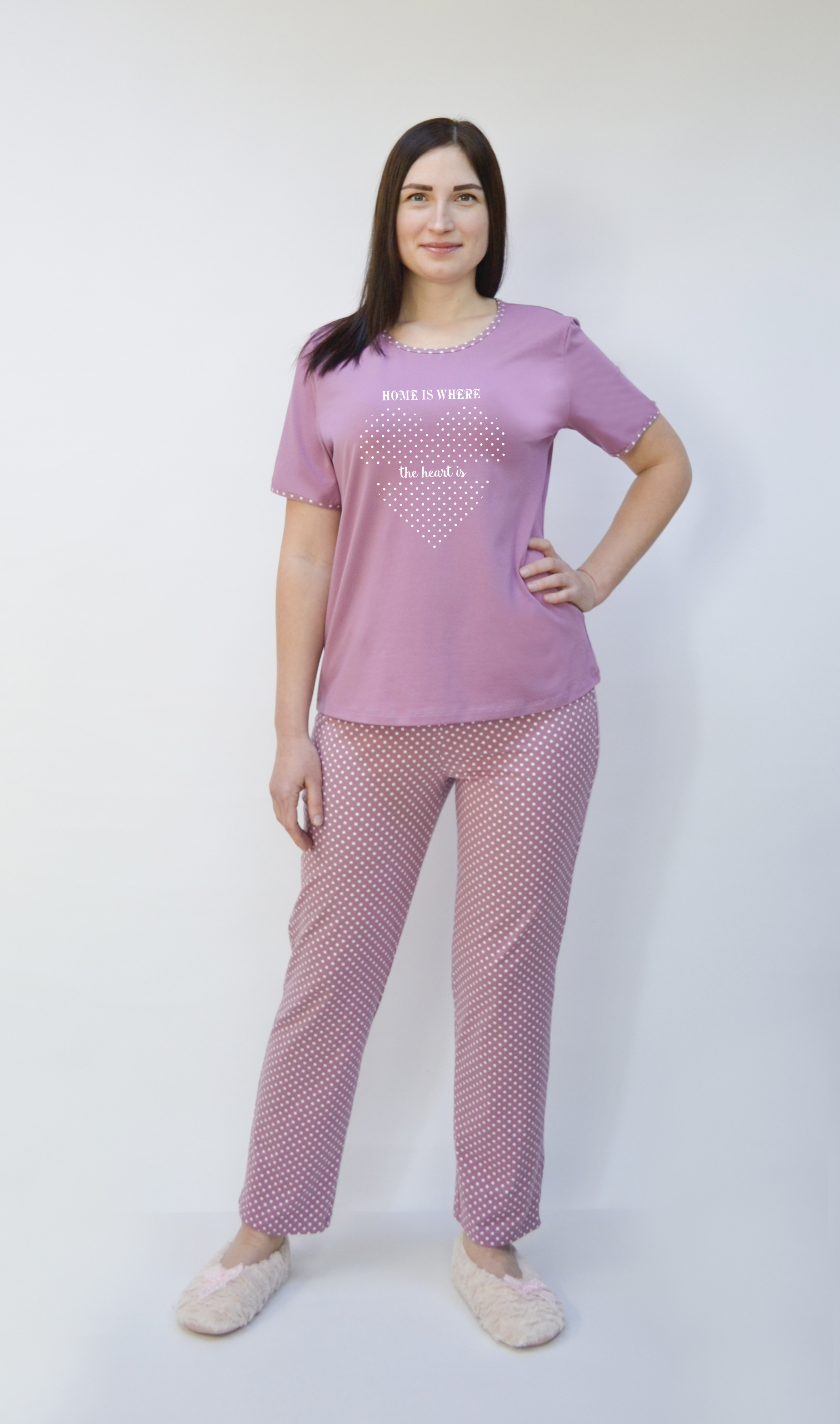 Практичный и удобный домашний костюм, состоящий из футболки свободного кроя и длинных прямых брюк. Приятный к телу, не теряет цвет и не деформируется при правильном уходе.