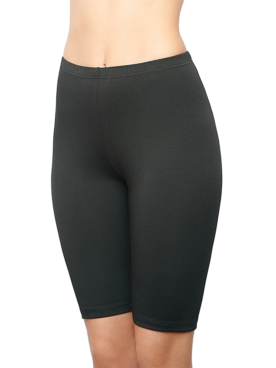 Универсальные бриджи плотного облегания без боковых швов, длиной ниже колена. Пояс на резинке, которая не давит и не стесняет движений. Отлично подходит под любую тунику, как для дома, так и для улицы.